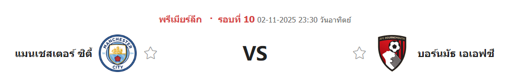 พรีเมียร์ลีก · รอบที่ 10 แมนเชสเตอร์ ซิตี้ VS บอร์นมัธ เอเอฟซี