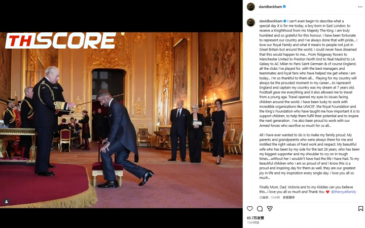 เมื่อวานนี้ (วันที่ 4 พฤศจิกายน) สมเด็จพระเจ้าชาร์ลส์ที่ 3 ได้พระราชทานบรรดาศักดิ์ อัศวิน (Knight Bachelor) หรือ "เซอร์" ให้แก่ เดวิด เบ็คแฮม อย่างเป็นทางการ หลังจากการรอคอยมาอย่างยาวนาน โดยหลังจากได้รับเกียรติครั้งสำคัญนี้ เบ็คแฮมได้ออกมาโพสต์ข้อความยาวเหยียดเพื่อแสดงความรู้สึก