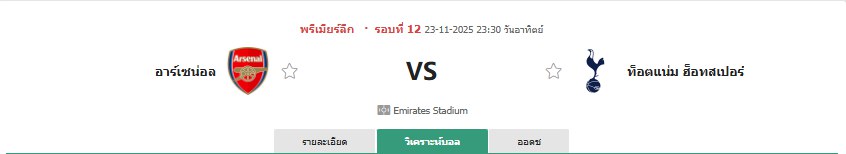 วันที่ 23 พฤศจิกายน เวลา 23:30 น. อาร์เซน่อลจะเปิดบ้านรับการมาเยือนของ ท็อตแน่ม ฮ็อทสเปอร์ ในศึกพรีเมียร์ลีก รอบที่ 12