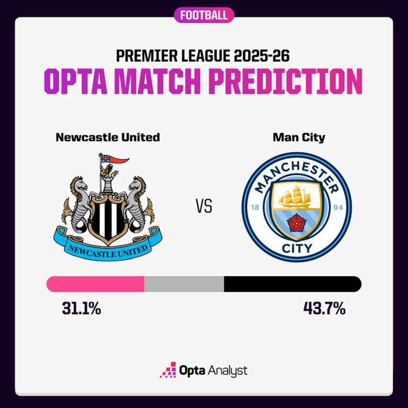 นิวคาสเซิลแพ้สองเกมลีกหลังสุด และมีแนวโน้มจะแพ้เป็นนัดที่สามติดต่อกัน โดยแมนเชสเตอร์ ซิตี้เป็นทีมเต็งด้วยโอกาสชนะ 43.7% ตามซูเปอร์คอมพิวเตอร์ของ Opta