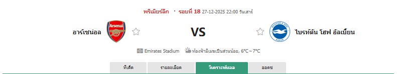 อาร์เซน่อล VS ไบรท์ตัน โฮฟ อัลเบี้ยน