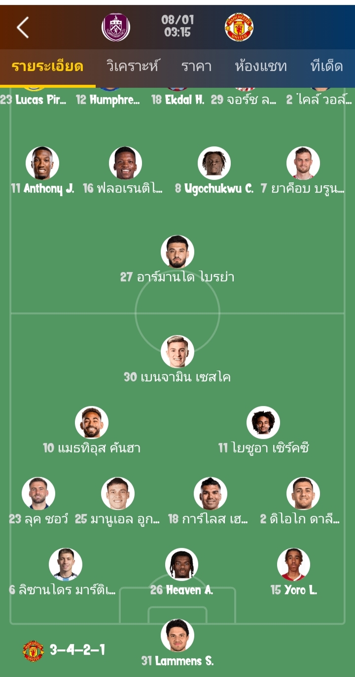 01/08 03:15เ เบิร์นลี่ย์ พบ แมนเชสเตอร์ ยูไนเต็ด