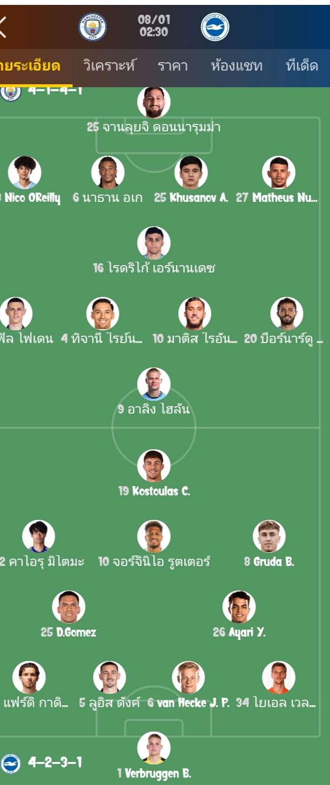 แมนเชสเตอร์ ซิตี้ที่อยู่ในอันดับที่สองของลีกมีฟอร์มโดยรวมที่เสถียรในช่วงนี้ โดยไม่แพ้ใครมา 10 เกมติดต่อกันและมีสถิติชนะสูง แต่ทีมกำลังเผชิญกับปัญหาบาดเจ็บของผู้เล่นสำคัญในตำแหน่งกองกลางและกองหลัง ซึ่งอาจส่งผลต่อความสมบูรณ์ของทีม ไบรท์ตันที่อยู่ในอันดับที่สิบมีฟอร์มที่ไม่ค่อยคงที่ในช่วงนี้ โดยชนะเพียงเกมเดียวจาก 6 เกมล่าสุด และทีมก็กำลังเผชิญกับปัญหาบาดเจ็บเช่นกัน โดยเฉพาะในแนวรับที่มีผู้เล่นสำคัญหลายคนไม่สามารถลงสนามได้ ทำให้ความมั่นคงในการป้องกันอาจลดลง ในประวัติการพบกัน ทั้งสองทีมชนะกันคนละสองครั้งจากห้าเกมล่าสุด