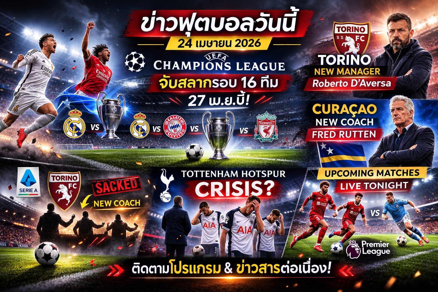 สรุป “ข่าวฟุตบอลเด่นประจำวันนี้ (อังคาร 24 ก.พ. 2026)” 5บรรทัด