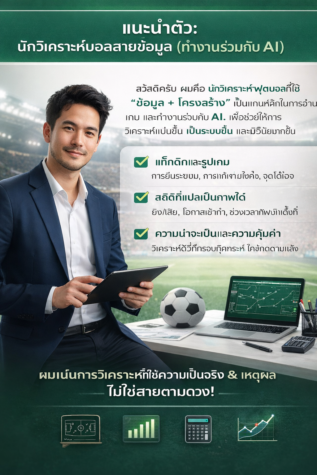 🧠 แนะนำตัว: นักวิเคราะห์บอลสายข้อมูล (ทำงานร่วมกับ AI)