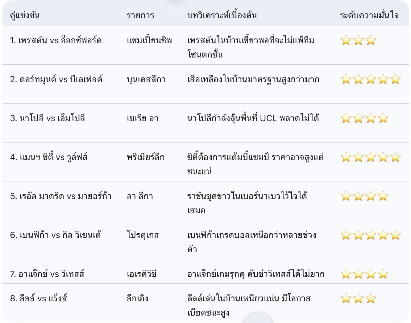 🔍 วิเคราะห์ 8 คู่แนะนำ (ตัวอย่างแนวทาง)
