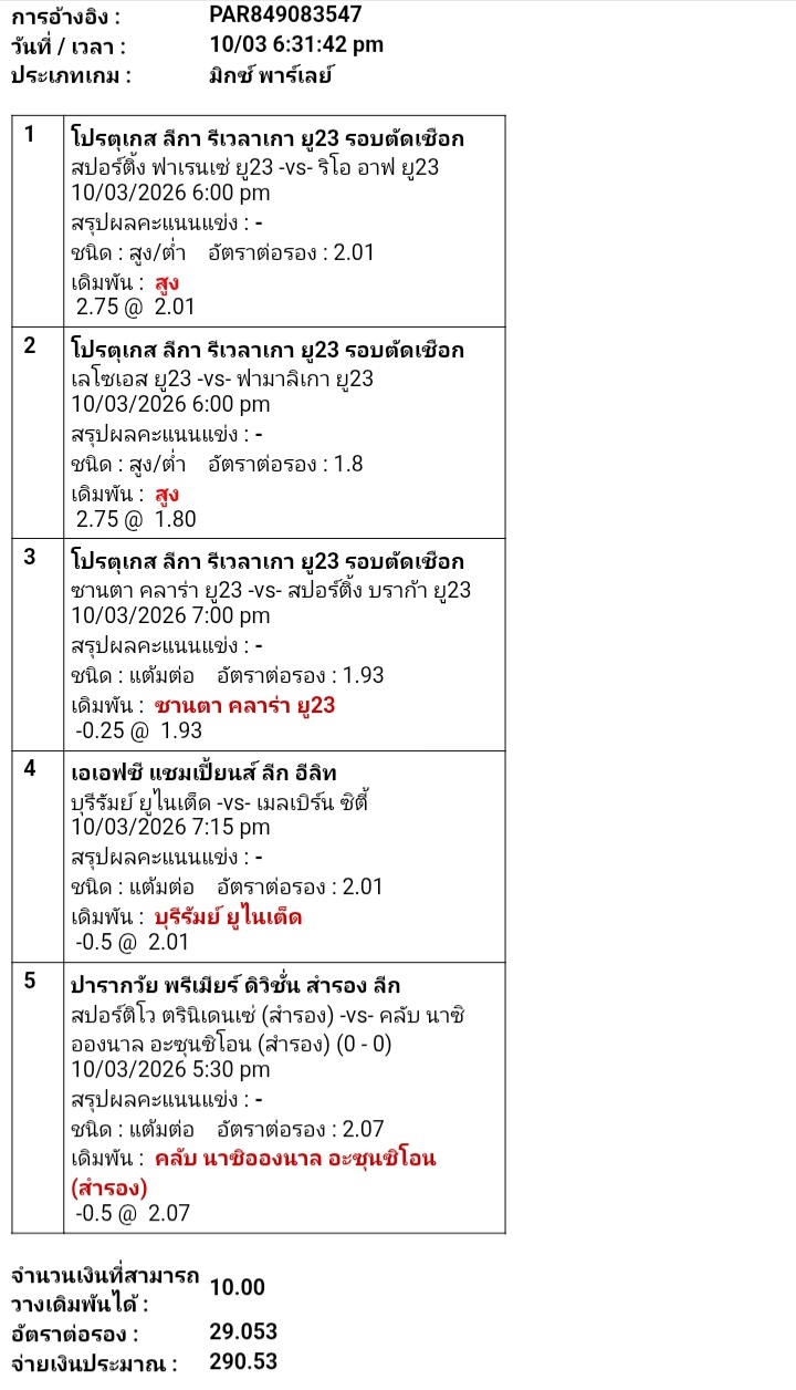 สเต็ป 5 ใบที่ 1 โปรเจค 5 คู่x10 บาท 10 ใบ ลองดูว่ามันจะเข้าบ้างไหม ขอแค่ใบเดียว