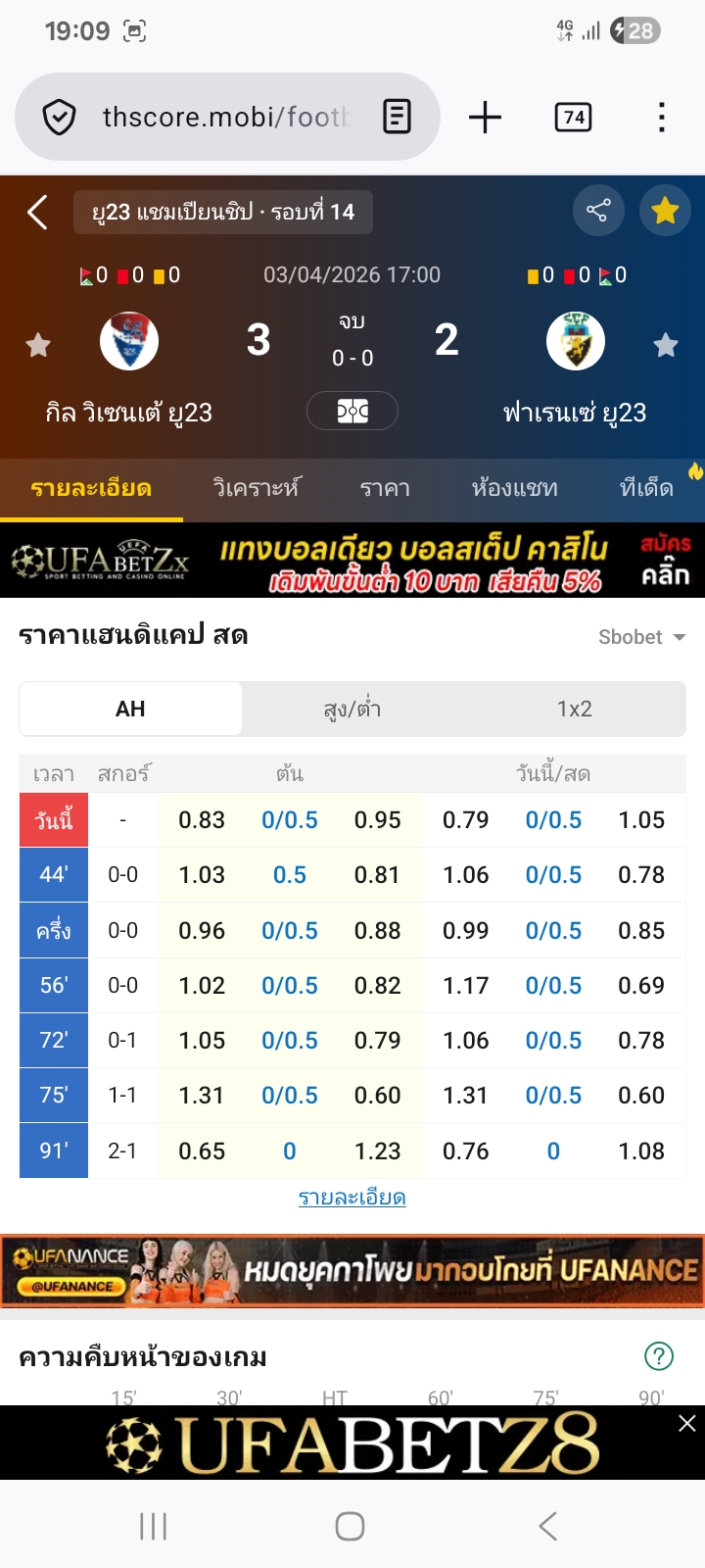 03 เม.ย. 2026,17:00 กิล วิเซนเต้ ยู23 VS ฟาเรนเซ่ ยู23 ต่อเจ้าบ้าน 0.25⭕ได้เต็ม3-2
