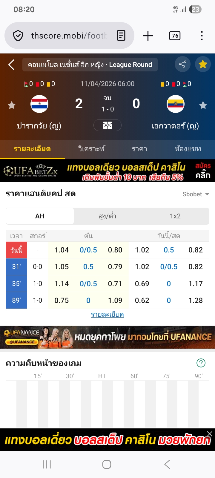 11 เม.ย. 2026,06:00 ปารากวัย (ญ) VS เอกวาดอร์ (ญ) ต่ำกว่า 2.5⭕ได้เต็ม2-0