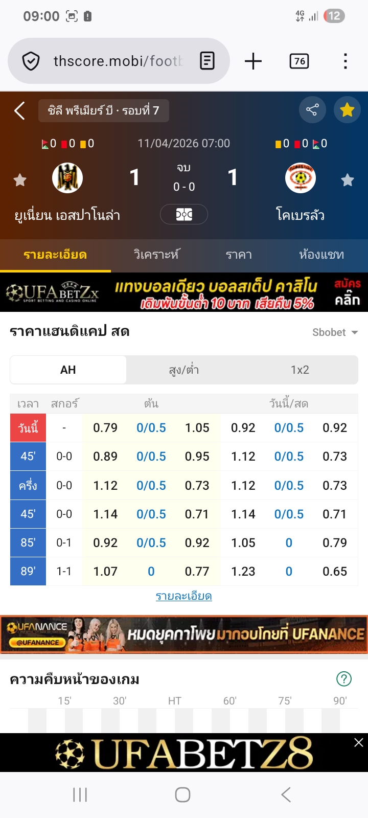 11 เม.ย. 2026,07:00 ยูเนี่ยน เอสปาโนล่า VS โคเบรลัว ต่ำกว่า 2.5⭕ได้เต็ม1-1