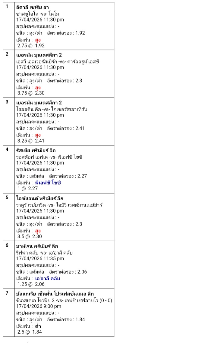 7 คู่ บอลต่ำกำลังเตะ 1 คู่