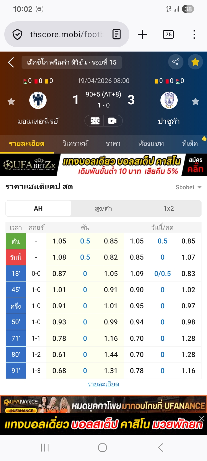 19 เม.ย. 2026,08:00 มอนเทอร์เรย์ VS ปาชูก้า ราคาเสมอทีมเยือน⭕ได้เต็ม ( ดูรูป ) บอลยังไม่จบแต่มั่นใจว่าแดก ถ้าพลิกได้กูจะเลิกลงเลย