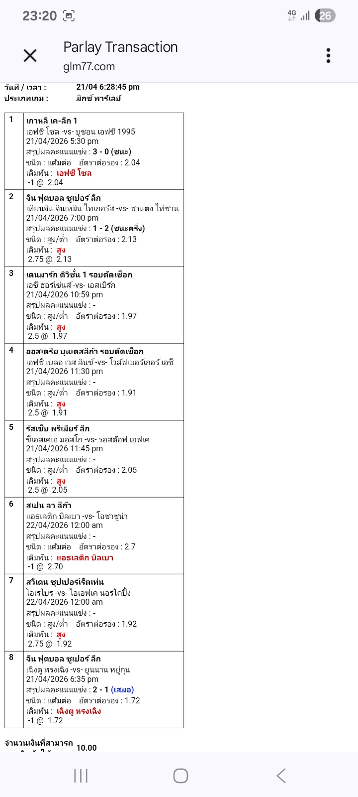 มันเหลือรอดมาใบนึงว่ะ 8 คู่มา 3 เสมอ 1 เหลือ 4 ไม่ได้เอามาโพสต์เพราะมันมีหลายใบจัด 555
