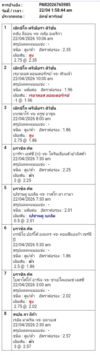เอาไปอีกใบบอลบ้า ๆ บอ ๆ 8 คู่ กูนี่ก็ชอบแทงให้เสียตังค์เล่น 555