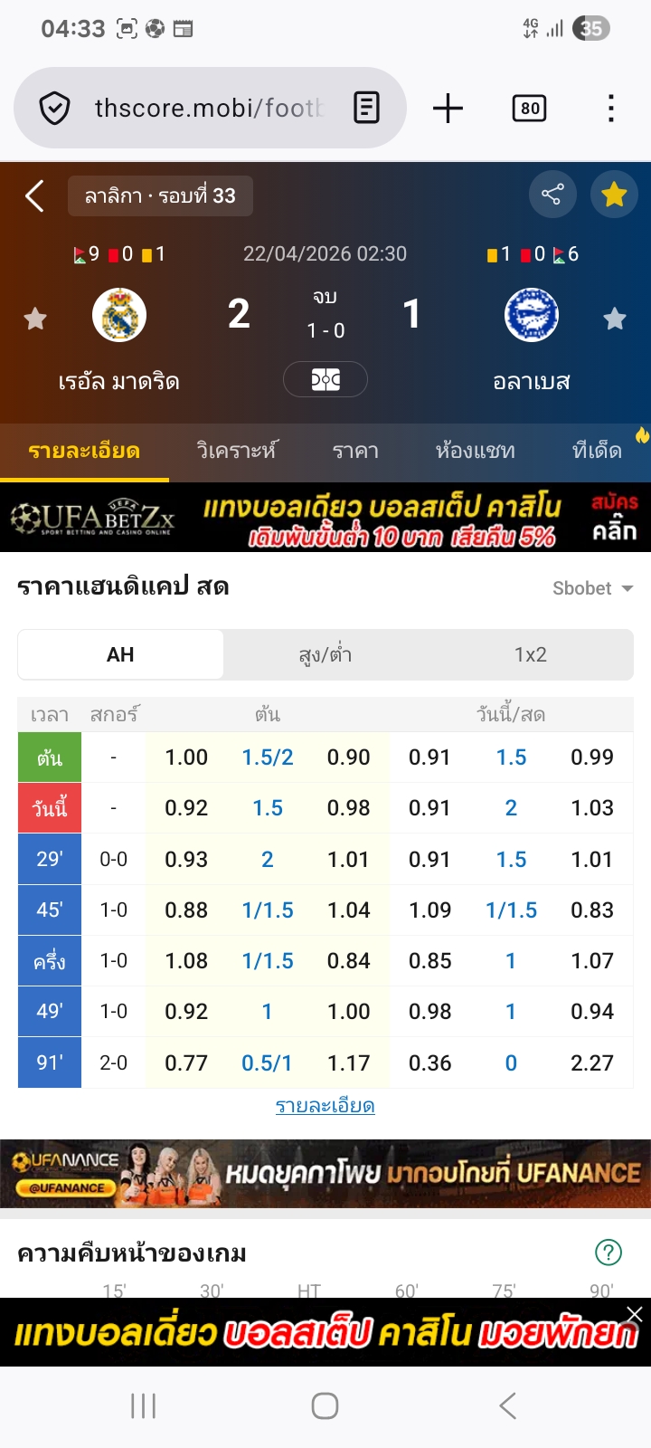22 เม.ย. 2026,02:30 เรอัล มาดริด VS อลาเบส ต่ำกว่า 3.5/4⭕เต็มตีนเตี่ย ( ดูรูป )