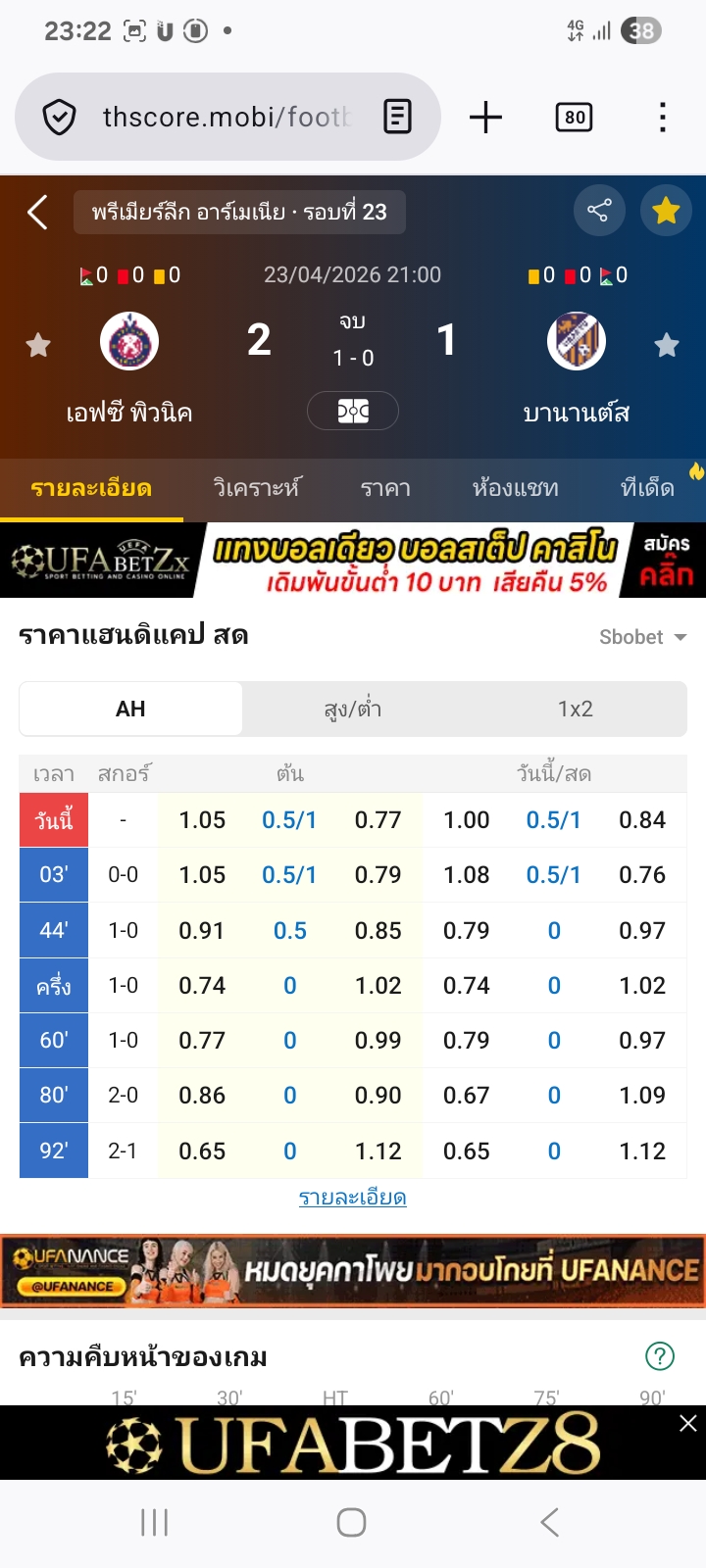 23 เม.ย. 2026,21:00 เอฟซี พิวนิค VS บานานต์ส ต่อเจ้าบ้านครึ่งควบลูก⭕ได้ครึ่ง ( ดูรูป )