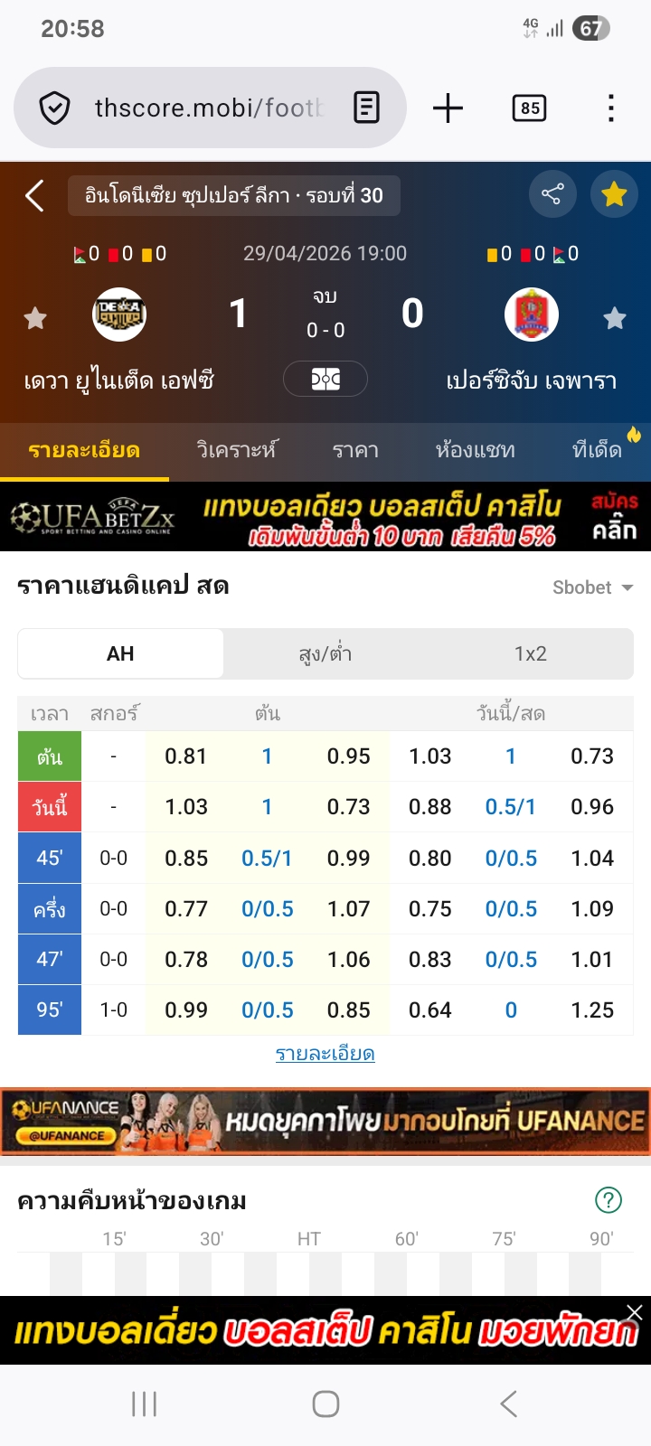 29 เม.ย. 2026,19:00 เดวา ยูไนเต็ด เอฟซี VS เปอร์ซิจับ เจพารา ต่อเจ้าบ้าน 0.5/1⭕ได้ครึ่ง